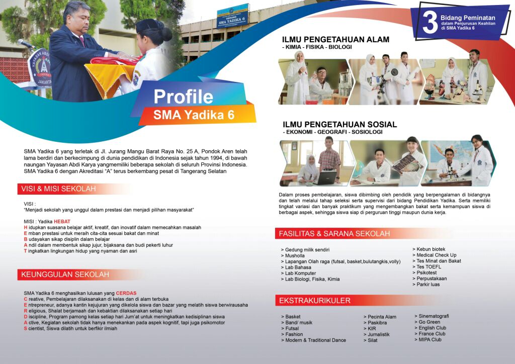 Brosur Penerimaan Siswa Baru SMA Yadika 6 T.P. 2018 / 2019